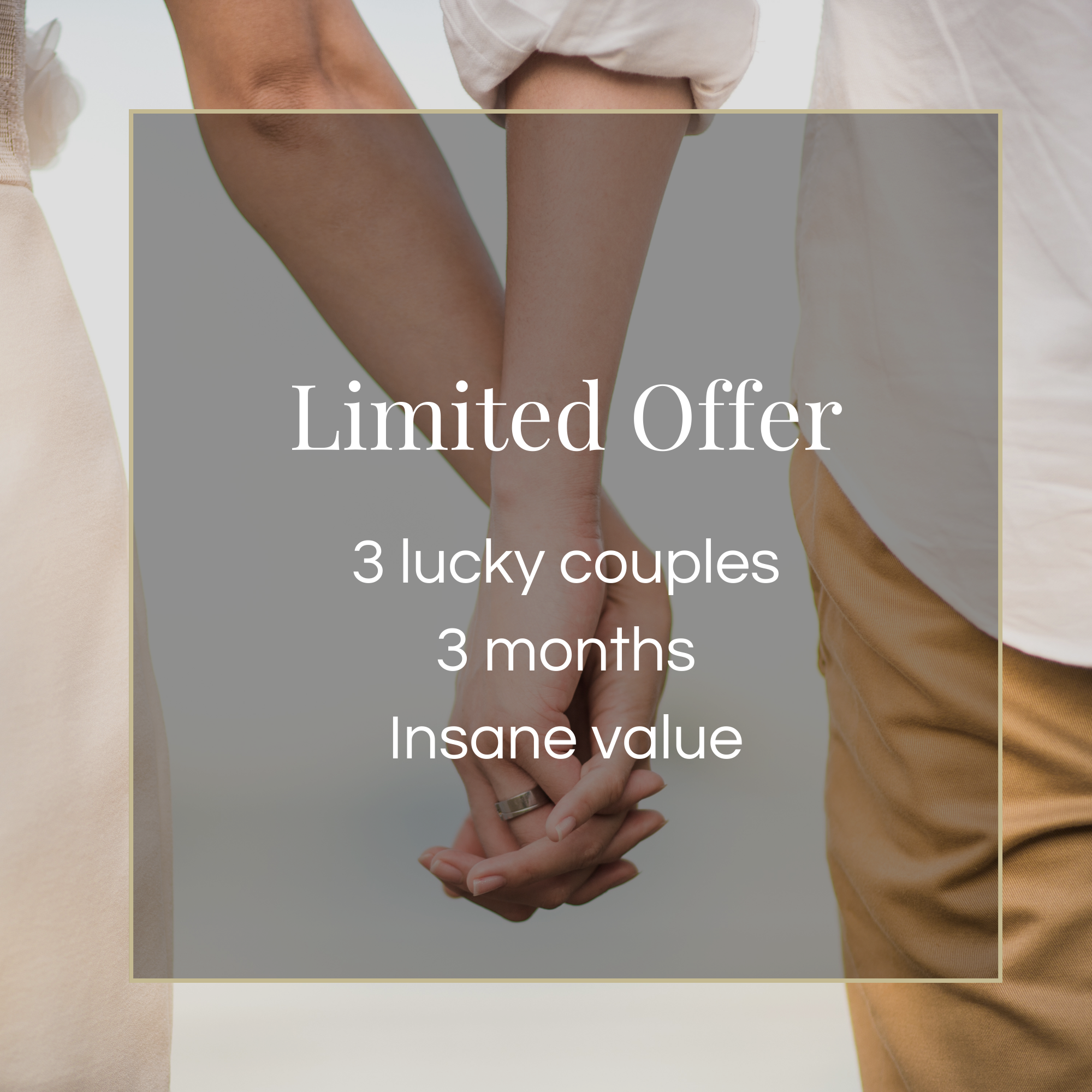 You’ve been asking for it and I’m excited to announce that I am taking applications for 3 couples to work with beginning in February. We will meet virtually 6 times over 3 months. This incredible experience will be valued at $900. HOWEVER I am in the mood for some New Year’s fun and I am offering this to 3 couples for just $300!